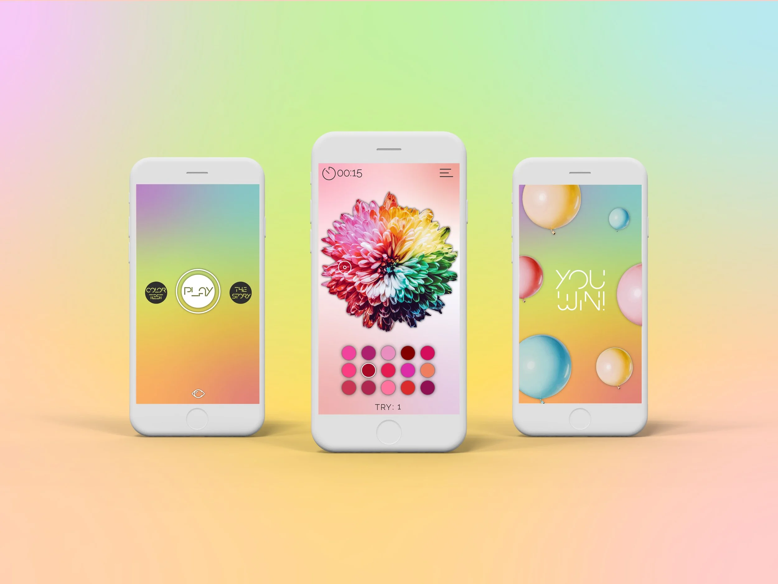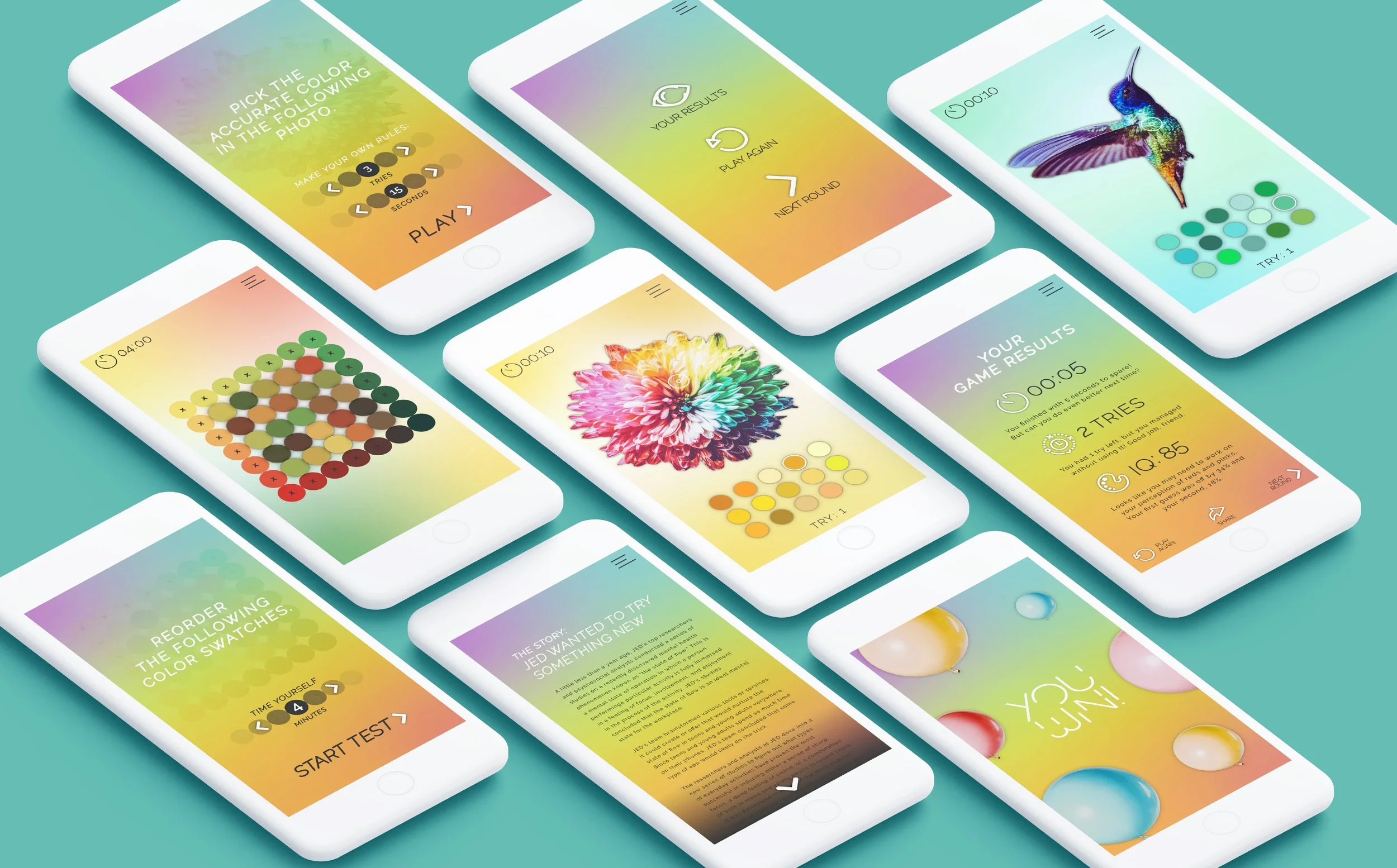The Jed Foundation, dedicated to protecting mental health for teens and young adults, conducted a study on the “state of flow”—a mental state of intense focus and productivity. Their research found that taking breaks from work to play a creative mobile game could help young adults maintain this state. The game needed to be engaging, challenging, and fun. My task was to design that game. I created a dynamic color-based app focused on exercising and improving color vision.